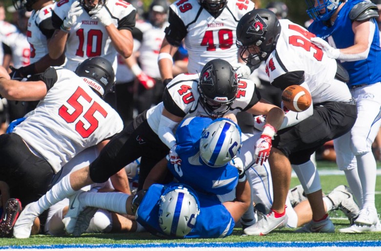 Mistakes on back-to-back possessions in the first half ultimately proved  a crippling blow for Colby (0-1). Up 3-0 in the second quarter, an errant snap on a punt attempt on fourth down gave Wesleyan (1-0) the ball on the Colby 2-yard line. Two plays later, Cardinals running back Charlie McPhee plunged into the end zone from a yard out. An extra point by Andrew Iferenta gave Wesleyan a 7-3 lead.
