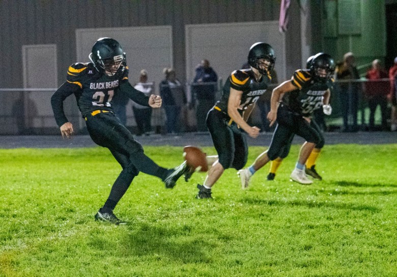 The Black Bears forced four of Boothbay’s turnovers in the first quarter alone, capitalizing with touchdowns on each of the ensuing drives. Two of those touchdowns were capped on scoring runs by Reid (one of 16 yards, one of 4 yards), another finished by a 9-yard pass to Seth White. By the end of the period, Maranacook had a 20-0 lead.