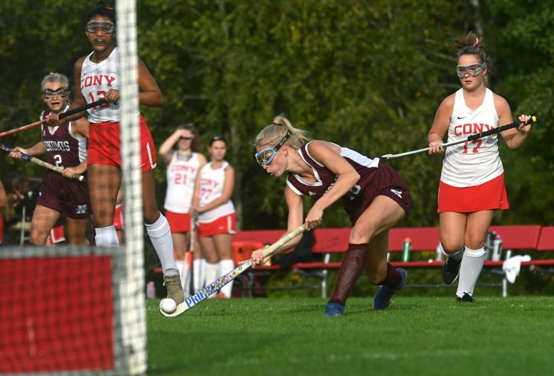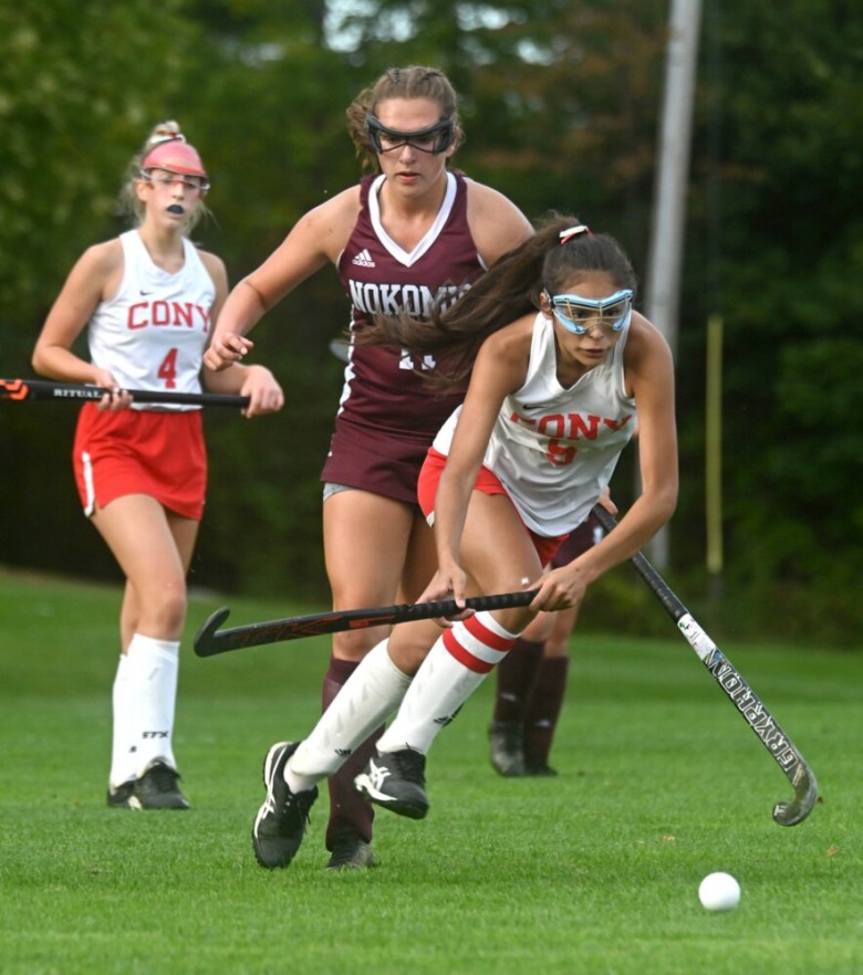 Cony had plenty of momentum prior to halftime and used its penalty corners to create havoc and chaos in front of Nokomis goalie Eliya Drummond (seven saves). The Rams initiated the scoring with Morrill hammering home a blocked shot from teammate Tatiana Roque.