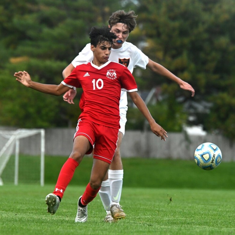 A goal differential like that indicates a powerful offense and shutdown defense, and it’s clear watching the Black Raiders that they have both. On offense Monday, Winslow struck first when Dubois played a ball over to Poulin, who made a touch before cracking a shot into the back of the net, and then again when Kris Loubier booted a long free kick from midfield toward the net and Poulin jumped up and headed it at the goal before Cony keeper Brennan Madore could snatch it out of the air.