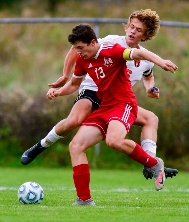 Cony evened the game up just under nine minutes later, with Albadri getting the ball out in front and firing a shot that was blocked by the Tigers’ Caleb Gardner. The ball kicked right back to Albadri, however, and the Cony senior shot again on net as he was falling to the ground and this time found twine.