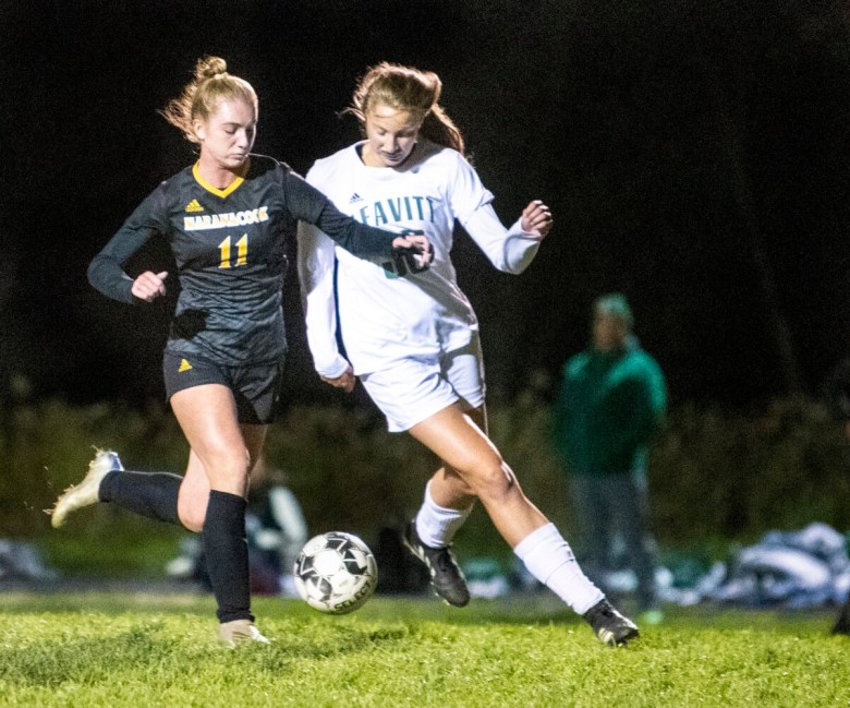 With 15 minutes left in regulation of a 0-0 soccer game Tuesday night, Maranacook senior Grace Dwyer sent a high, arcing pass toward the Leavitt net, a play that seemed to be almost more of a clear than anything else.