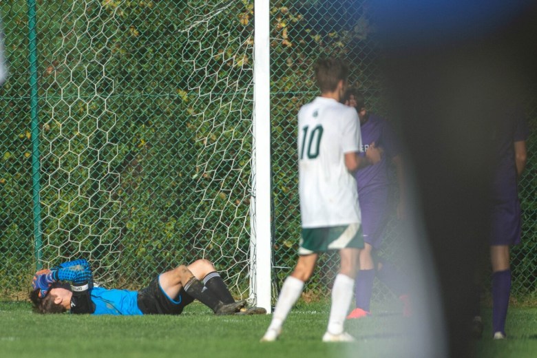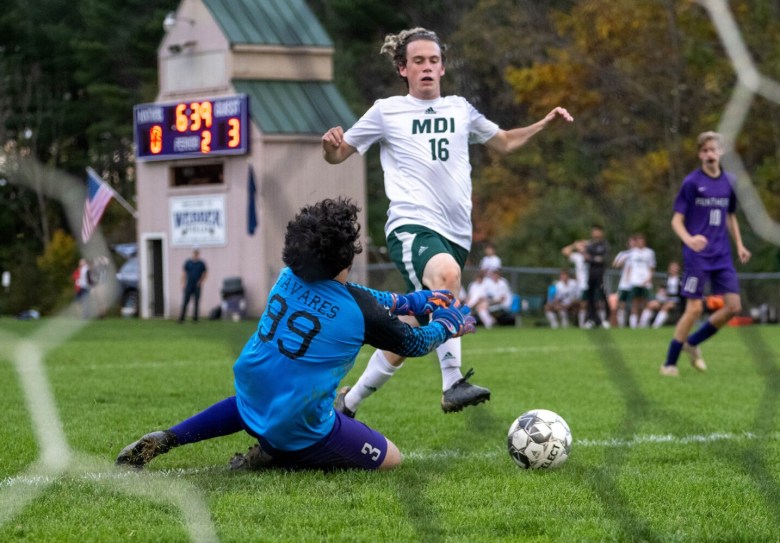 And Waterville did. Garrett Gendreau and Keagan Tavares had second-half tries that just skidded left of the net, and on the Panthers’ best chance, Noah Wilson arced a perfect shot in the 63rd minute that was set to come down just under the crossbar, but MDI keeper Quentin Pileggi made a leaping save to bump it back harmlessly over the goal.