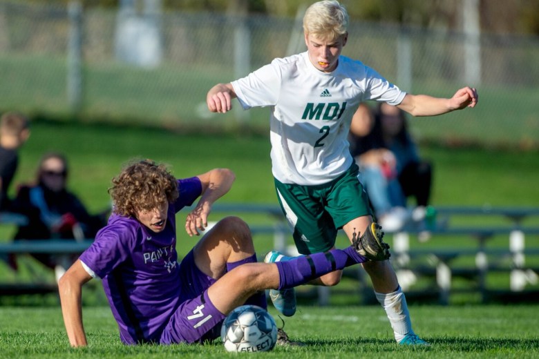 The game was evenly played for the first 20 minutes — Waterville’s Garrett Gendreau even had a goal negated by an offside call in the eighth minute — but MDI broke through in the 24th minute when Baker played a great through ball up to a sprinting Howell, who was alone and buried the shot with 16:29 to go in the half.
