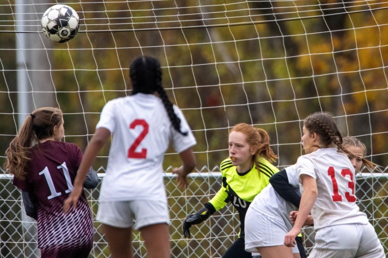 Early on, it appeared frustration would be the day’s theme for the Warriors. Cony struck first when Goonesekere chipped a shot that just floated underneath the bar with 37:03 left in the first half, but Nokomis owned possession from there. While Harmon only had to make three saves, Cony keeper Kylee Huard made 12, and Nokomis totaled 12 corners while the Rams had none.
