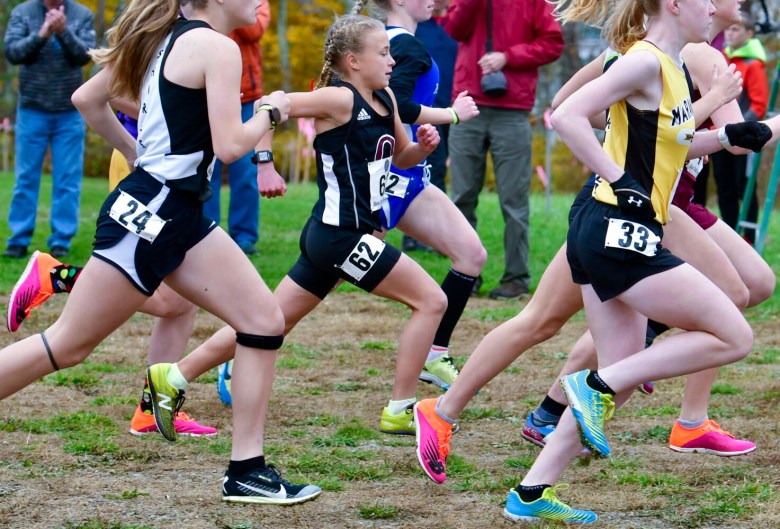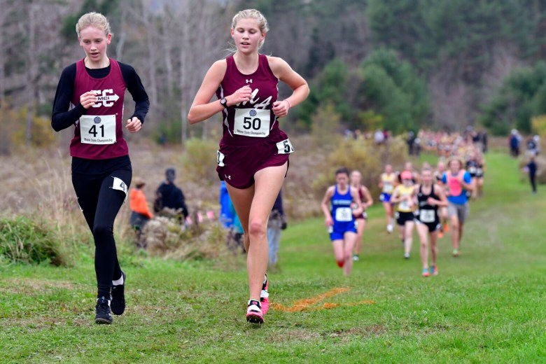 Hesler is one of three Bonny Eagle seniors who have been on three cross country championship teams. Emmaline Pendleton recovered from an early fall and a puncture wound on her upper thigh to finish fifth in the Class A race. Classmate Hannah Stevens was 14th, just behind sophomore Addy Thibodeau.