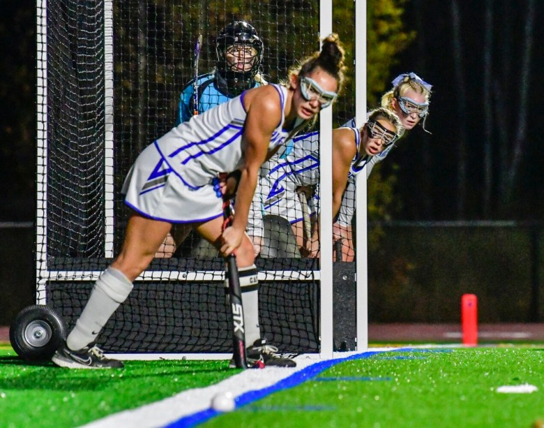 “I’m super proud,” Lanham said. “Chelsey (Cote), my goalie, had numerous saves all season. I’m very confident with her in the cage. I know that my defensive unit coming out, those four girls are strong, sturdy and work together. Maddie (Arsenault) is my flyer, she does a great job getting to the ball and breaking up the play, so there’s none of those hard, strong hits.”