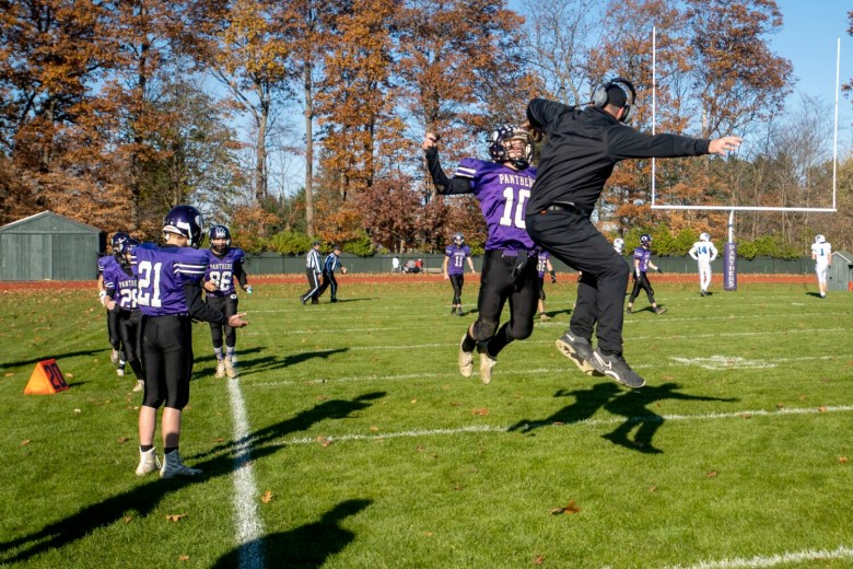 Von Oesen threw a 2-yard touchdown pass to Billy Place on fourth and goal from the 2-yard line on the Purple Panthers’ opening drive. He added a 1-yard rushing touchdown later on in the quarter.