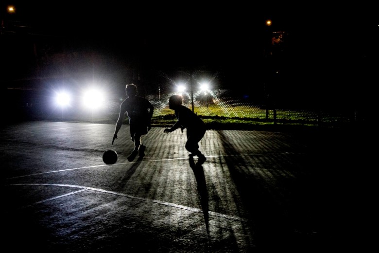 A group plays four on four at North Street Park with some lighting help from their cars on Saturday, November 7, 2020. (Staff Photo by Michael G. Seamans/Staff Photographer)