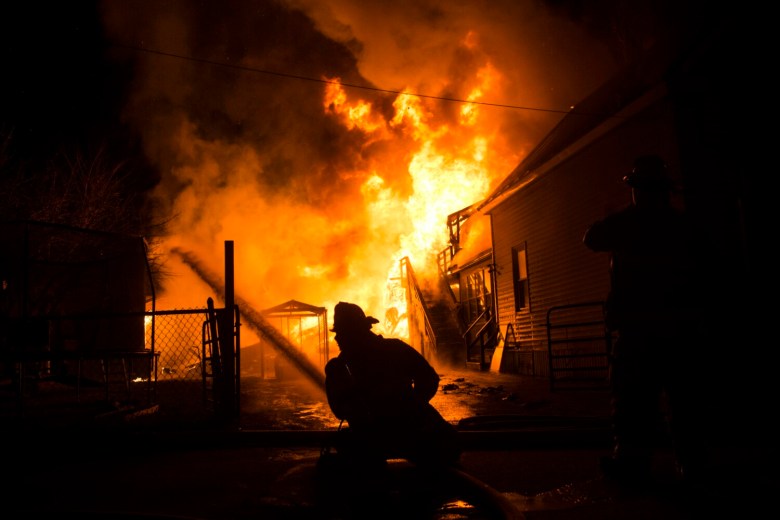 Waterville, Winslow, Fairfield and Oakland fire departments battle a fully-involved apartment building fire Dec. 3, 2020, on Carey Lane in the South End of Waterville during the early morning hours. This photo won first place for a spot news photo in the annual Maine Press Association contest.