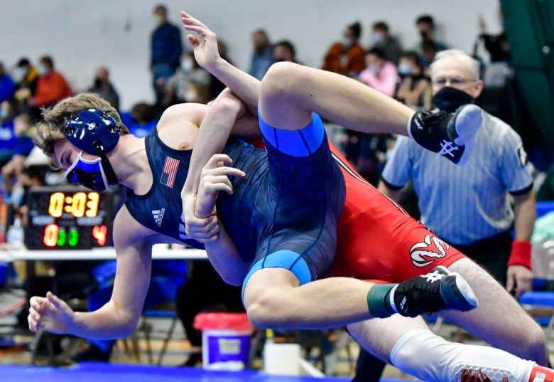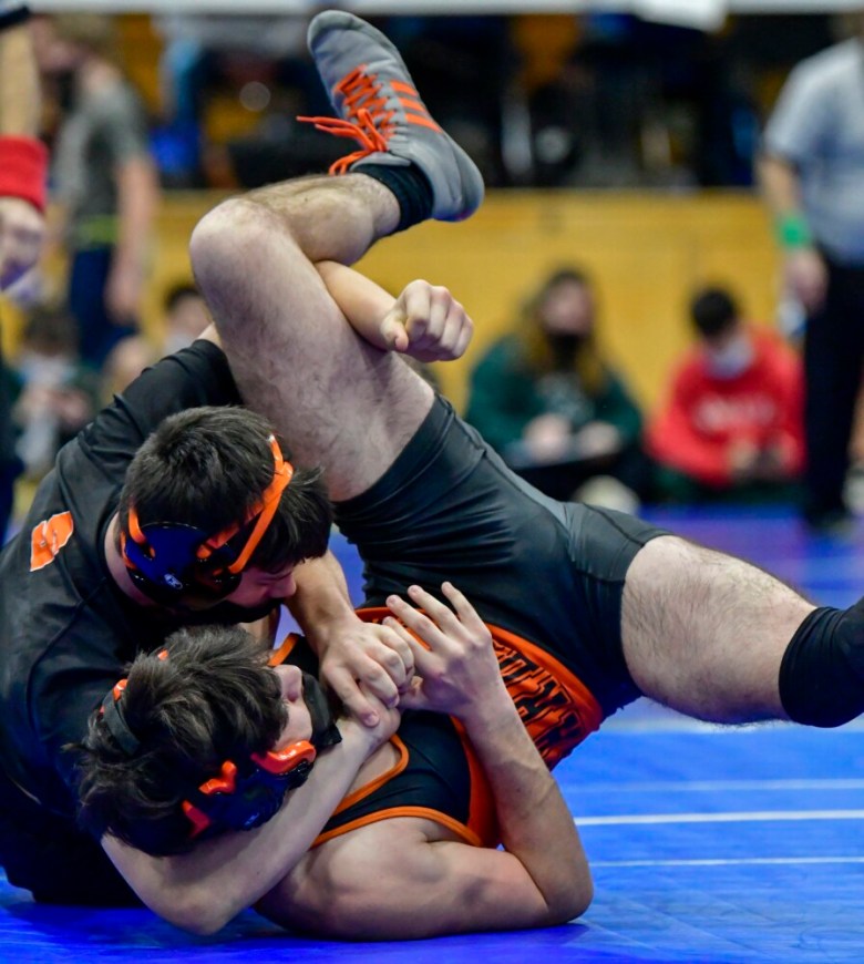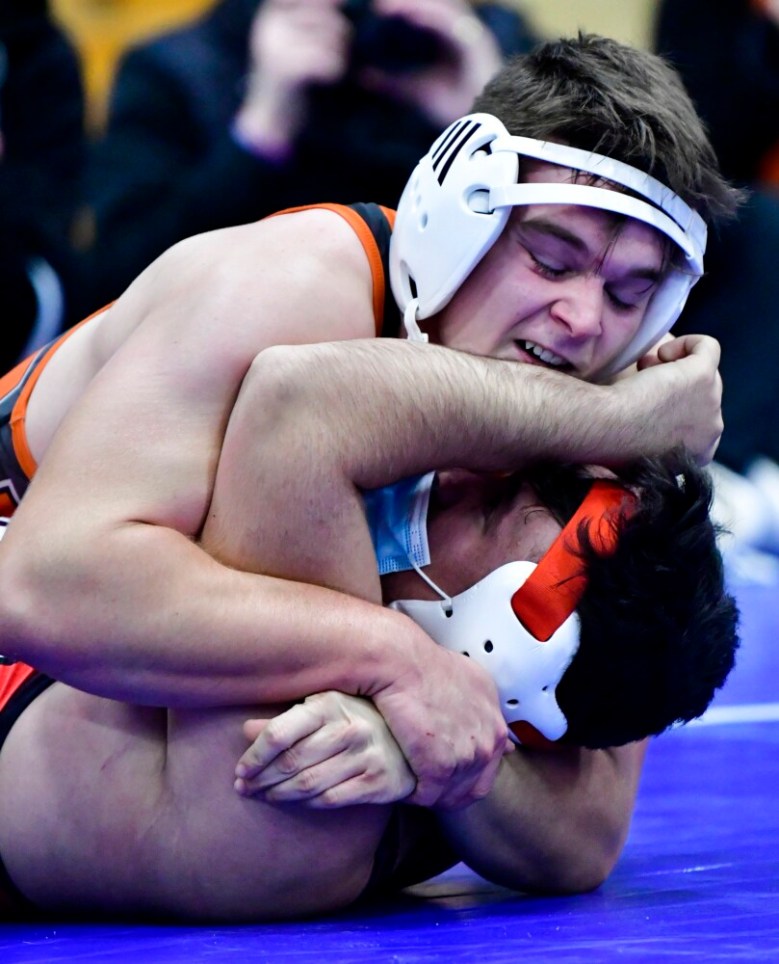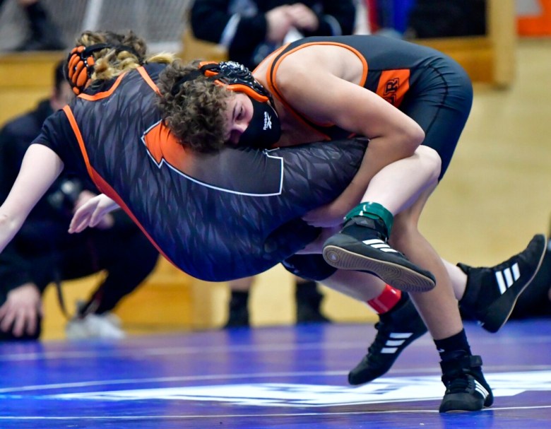 “It definitely does affect how you breathe once you get tired during the match, but it’s not too bad if you practice with it,” said Mt. Ararat/Brunswick’s Shea Farrell, the top seed at 160 pounds. “The first couple of practices you felt nauseous and stuff, just because there’s not enough oxygen. But now we’re pretty used to it.”