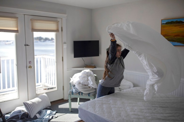 “It’s not like we can just go down to the next office building and find some new career that will take care of our family,” Watt said as she gestured toward Main Street, home to two dozen island businesses, many of which shut down in winter.