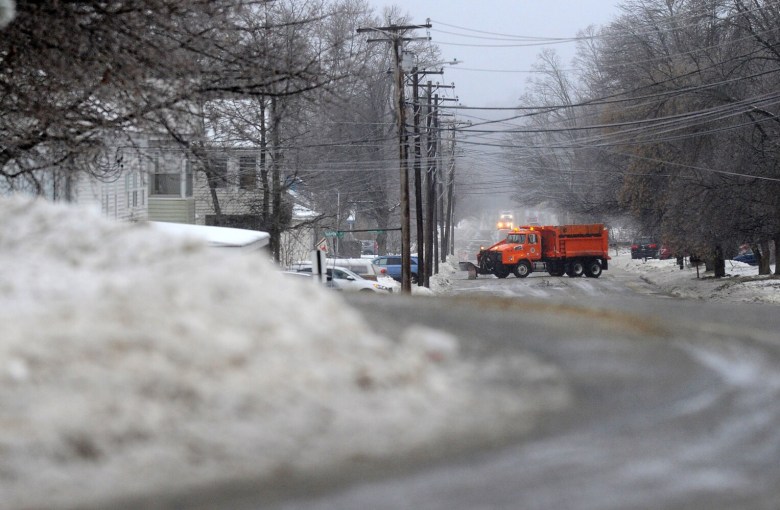 The persistent precipitation kept public works crews busy, as sand, salt and plow trucks made their rounds of roads only to have the freezing rain build ice back up again after they passed.