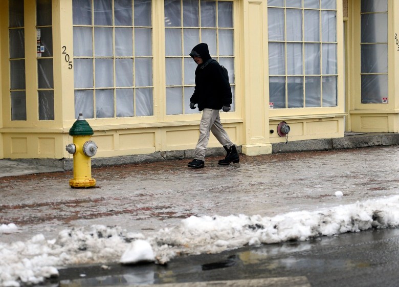 “Right now we’re not looking at ice storm conditions,” Becker said, noting so far the ice on surfaces in Maine was being measured in tenths-of-inches. “Our saving grace in this is it has been switching between freezing rain and freezing drizzle. And drizzle, though it still accumulates, doesn’t accumulate at the same rate, drizzle droplets are smaller than rain droplets.”