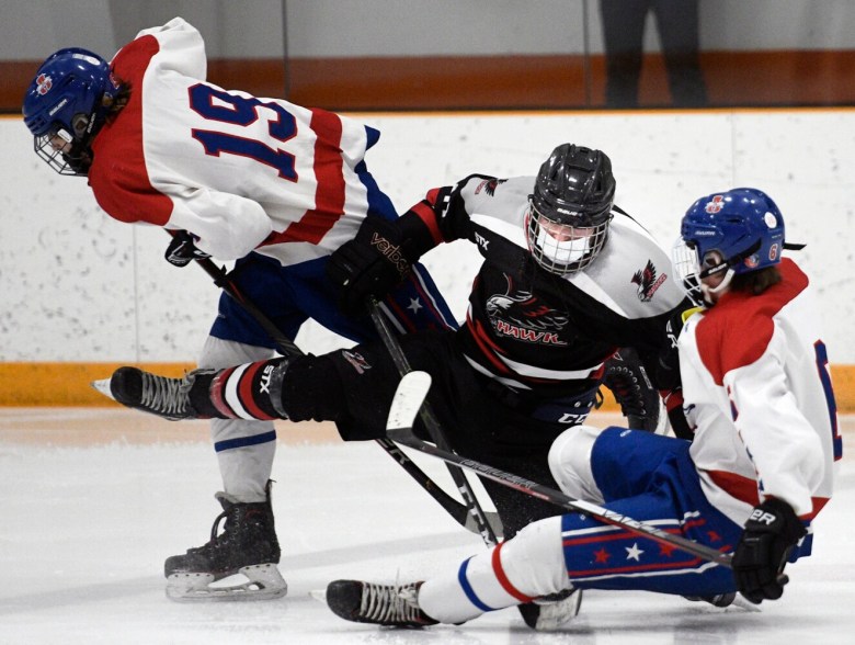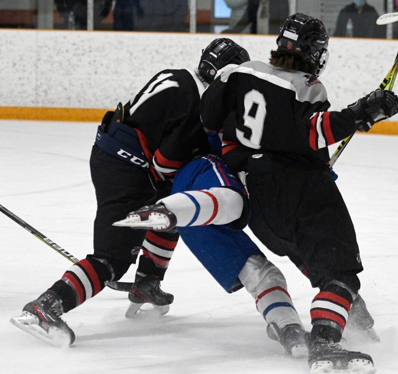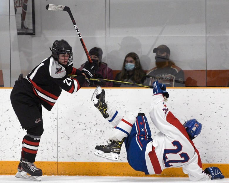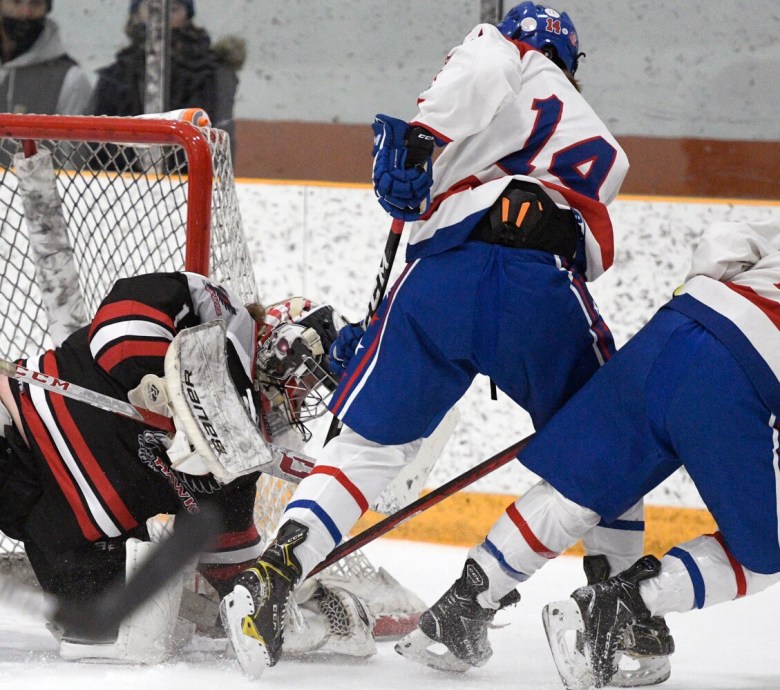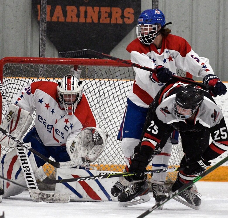 “After a tough loss to Brunswick last weekend, and only getting one practice in since then, the boys basically had to work out the kinks in the game,” Eagles head coach A.J. Kavanaugh said. “We had some growing pains. But they knew going down 3-2 going into the third (period), we had to play our best hockey down the stretch, and they did that. I’m proud of the way they finished the game, for sure.”