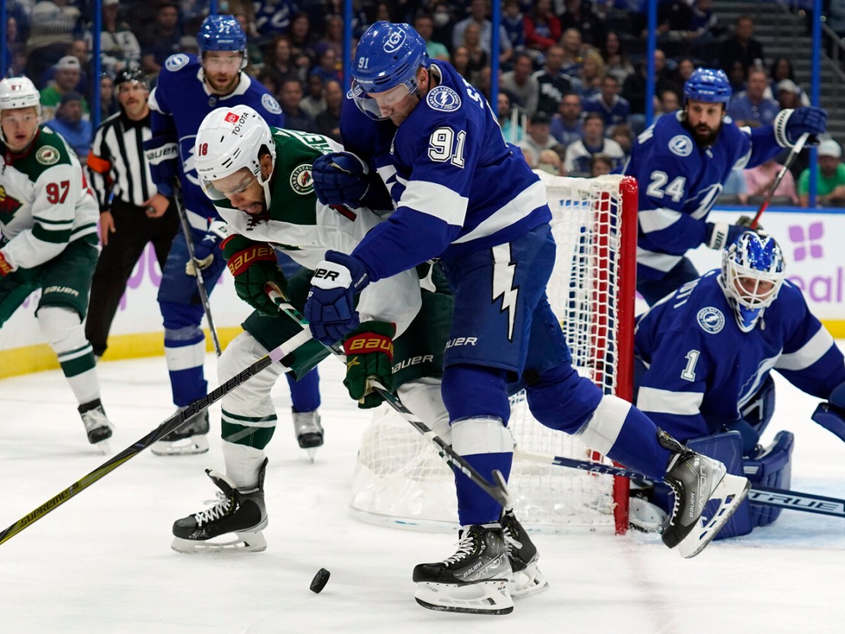 Minnesota scores two goals late in the third, but Tampa Bay gets the victory.