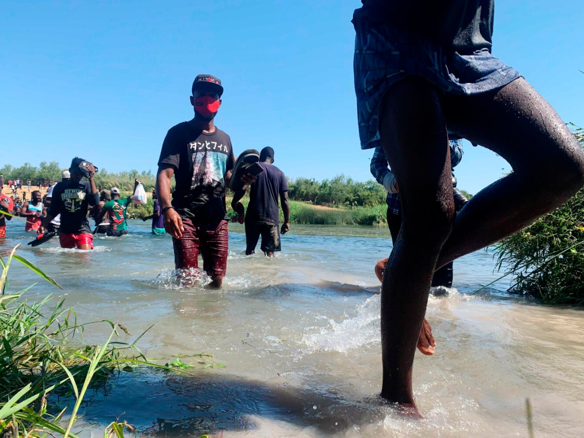 About a dozen Texas Department of Public Safety vehicles lined up near the bridge and river where Haitians have been crossing from Ciudad Acuna, Mexico, into Del Rio, Texas, for almost three weeks.