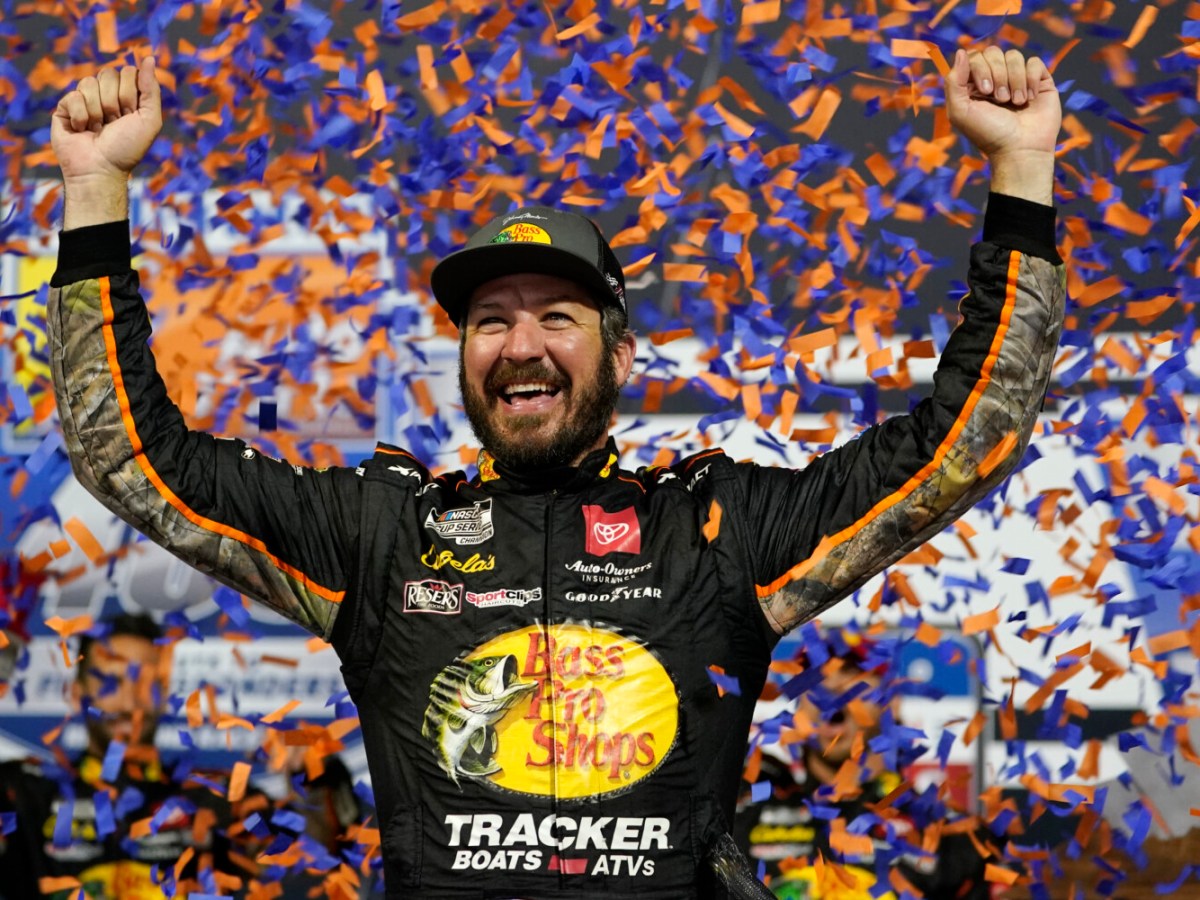 Martin Truex Jr. leads a 1-2-3 finish for Joe Gibbs Racing, beating Denny Hamlin and Christopher Bell.