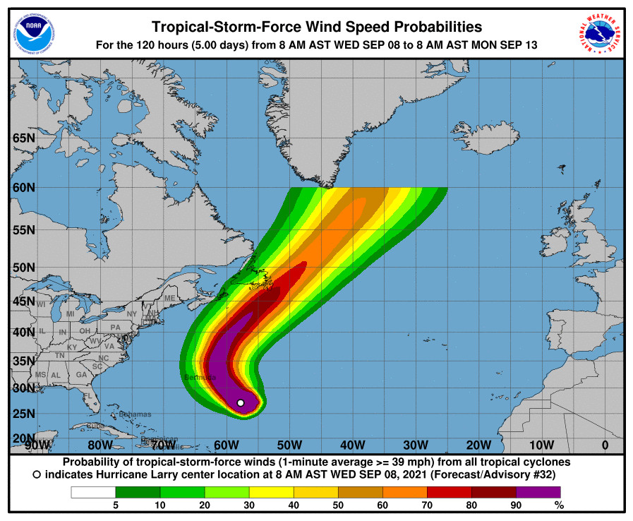 Hurricane Larry now a Category 2; swells to impact U.S. East Coast for the rest of the week