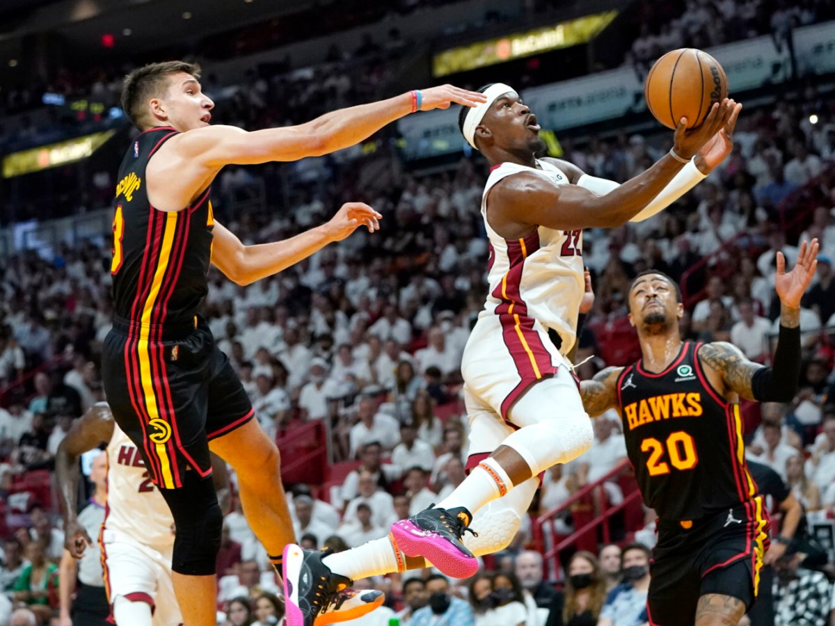 Miami, the No. 1 seed in the East) holds Trae Young to a season-low eight points in a 115-91 win.