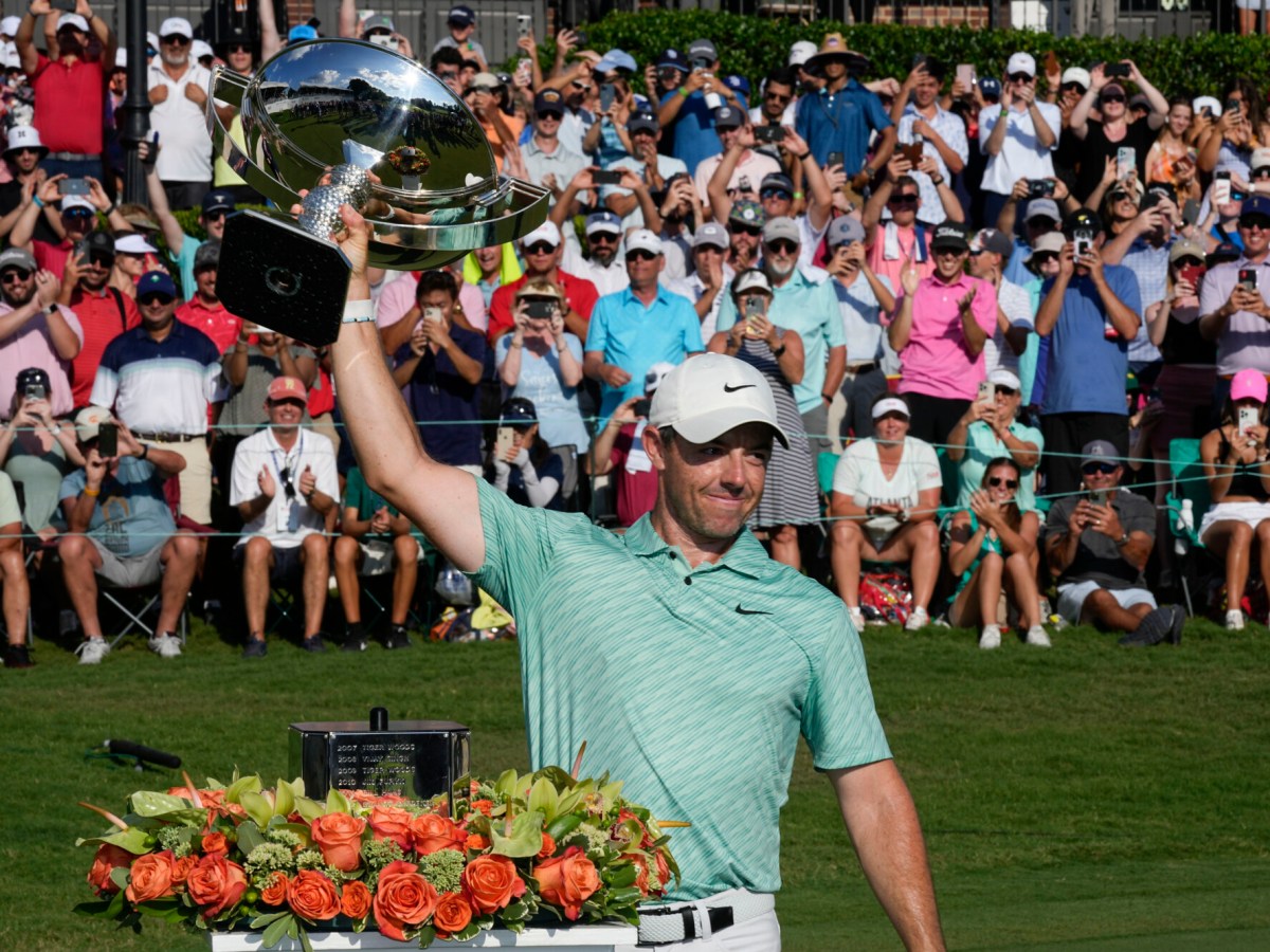 Rory McIlroy erases a six-stroke deficit against Scottie Scheffler in the final round and becomes the first three-time postseason champion.