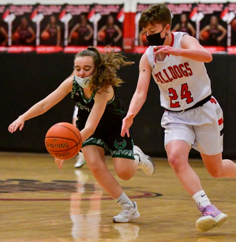 When the resilient Phoenix, led by Olivia Mastine’s 20 points and Jaydn Pingree’s 14, fought back to take a 52-49 lead inside of three minutes, Hall-Dale was ready again. The Bulldogs’ scuffling offense picked up, with Baker converting a three-point play to tie the score with 2:19 left. After Baker picked up a rebound on the other end, the ball found its way to Madore, who swished a 3-pointer for a 55-52 lead with 1:47 to go.