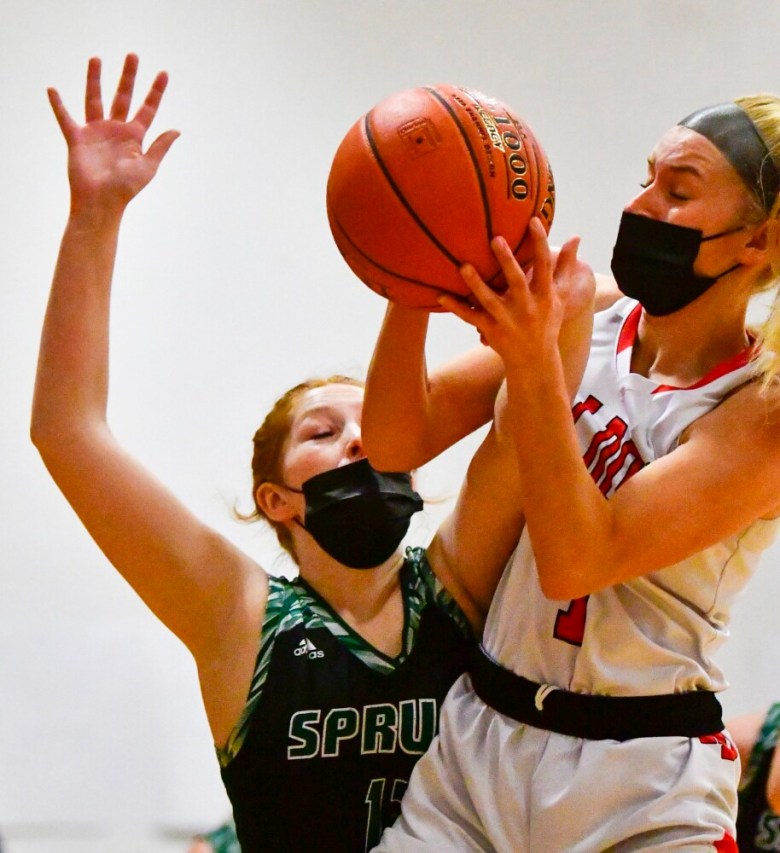 “We’ve had the pressure in years past, like with last year’s (Central Maine) championship,” said senior forward Averi Baker, who scored 11 points. “So we know how to keep our composure through those tough moments.”