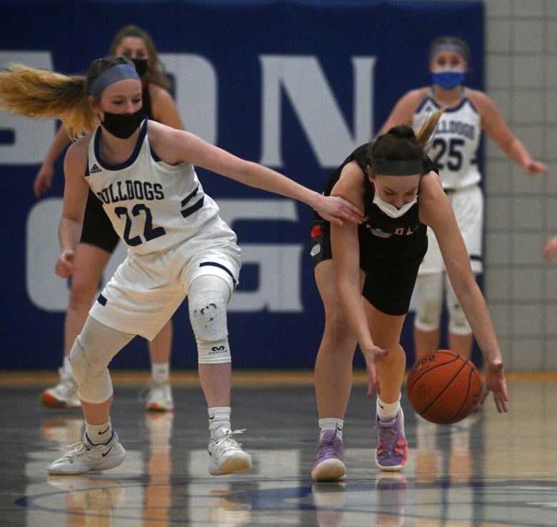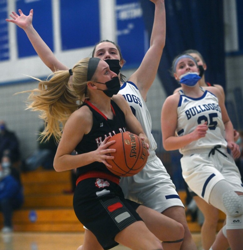 Fueled by the massive rebound advantage, the Bulldogs strolled to a 67-38 Mountain Valley Conference win over Madison at Venziano Gym. Ireland pulled down 10 of Hall-Dale’s 46 team rebounds, while Lily Platt and Averi Baker each ripped down eight.