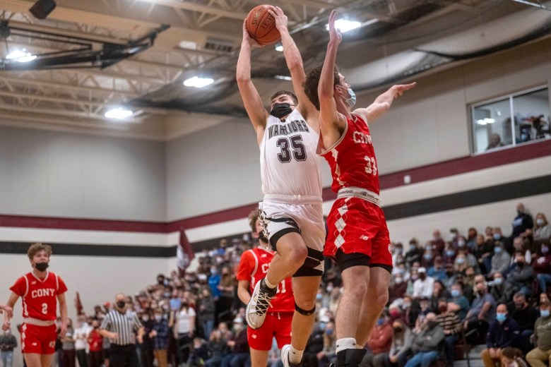 On Cony’s next possession, a block by Cooper Flagg that Cony coach T.J. Maines argued was goaltending helped keep the Rams off the board for a trip down the floor, and Flagg was fouled while making a basket on the other end. Flagg missed the free throw but Nokomis kept possession, Ace Flagg made a basket to make it 47-43, and the Warriors were off and running like they were in the first meeting. Nokomis scored the next 11 points to mount a 58-43 advantage.
