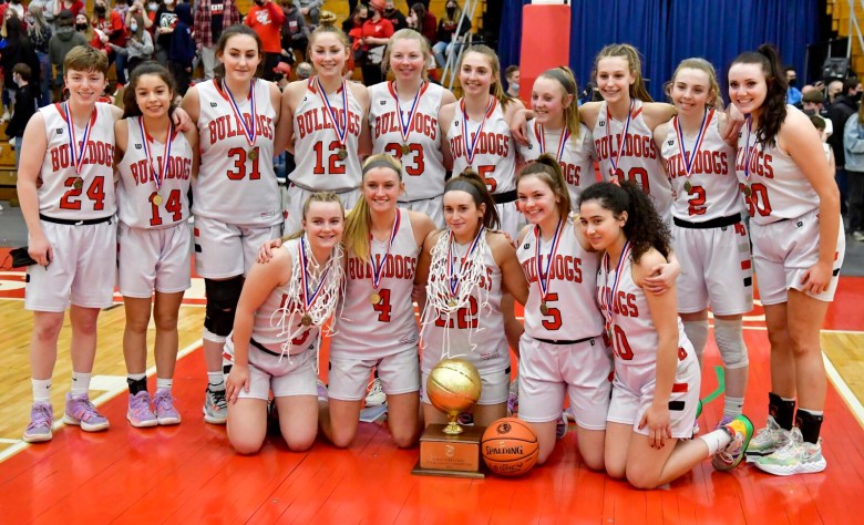 The Bulldogs beat Stearns 57-42 for the Class C state championship Saturday night at the Augusta Civic Center. Hall-Dale finishes its season with a perfect 22-0 record, while the Minutemen finish 16-4.