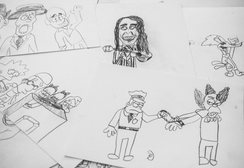 Polky mainly works in pencil and specializes in drawing lively pop culture figures and cartoon characters spanning several decades. He also creates caricatures of classmates and teachers.