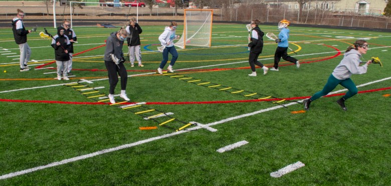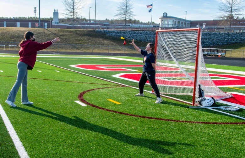 “This is the earliest we’ve ever been outside. First day of practice, we’re outside,” said Bechard, a senior attacker. “We’re freezing, but we’re just so happy to be out here. It’s an unreal feeling.”