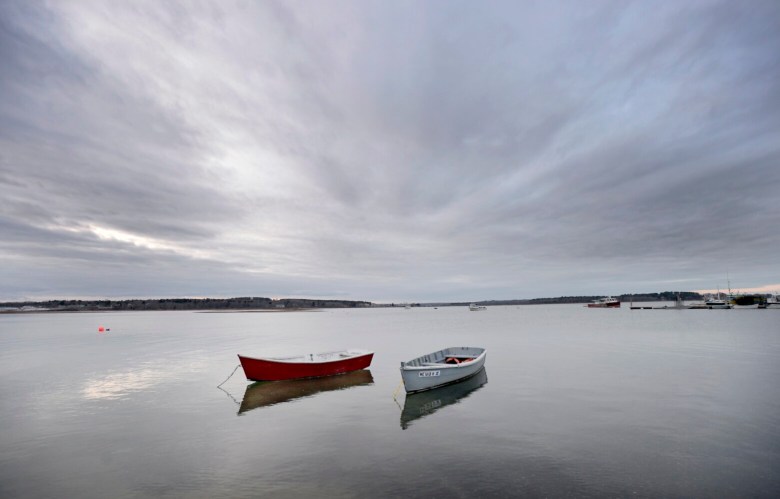 SCARBOROUGH, ME - NOVEMBER 30: Dinghies tied up in the Nonesuch River at Pine Point in Scarborough Friday, November 30, 2018. (Staff photo by Shawn Patrick Ouellette/Staff Photographer)