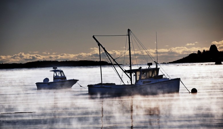 SACO, ME - JANUARY 21: Sea smoke rises from the water around lobster boats in the Saco River at Camp Ellis Tuesday, Jan. 21, 2019. (Staff Photo by Shawn Patrick Ouellette/Staff Photographer)