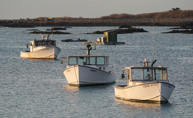 Lobster boats are tied at their moorings at Kettle Cove in Cape Elizabeth.