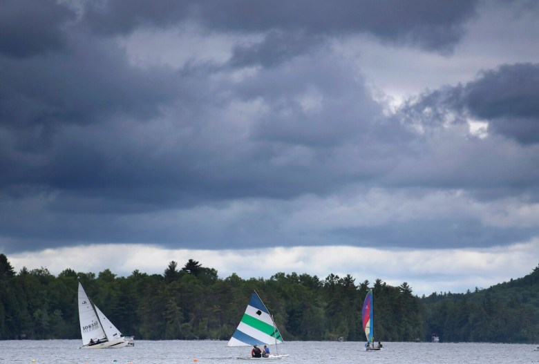 Sail boats on Echo Lake in Mt. Vernon beneath overcast skies.