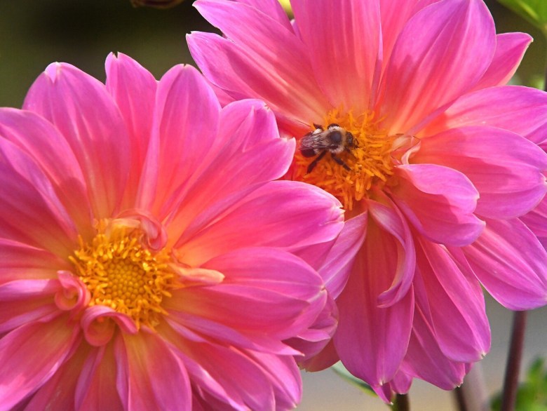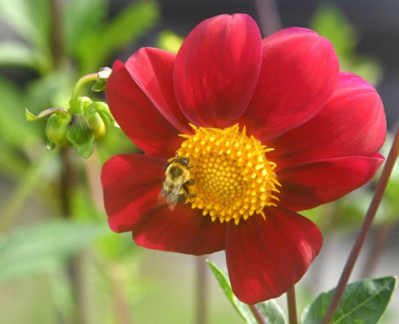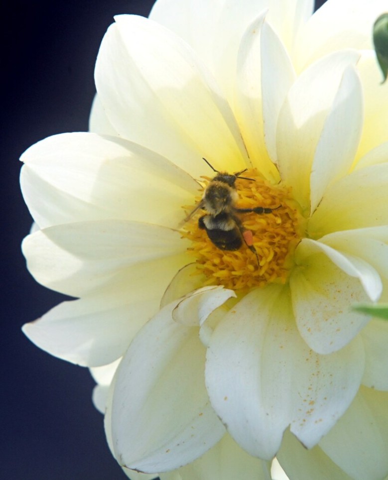 3353# 01flowers WATERVILLE, MAINE SEPTEMBER 22, 2021 A bee lands on a flower while flying around the CampbellÕs (cq) True Valley Community Gardens at the Alfond Youth & Community Center in Waterville, Maine Wednesday September 22, 2021. (Rich Abrahamson/Morning Sentinel)