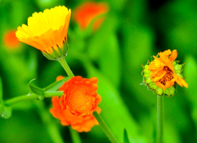 Calendula flowers in Jessica Gorton's garden at Mother Jess Herbals in Readfield.