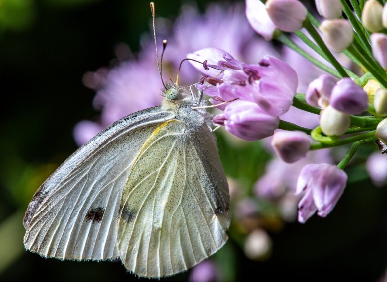 A butterfly uses it's long tongue to work on a flower in the Adopt A Spot garden on Mill Street in Auburn Monday night.