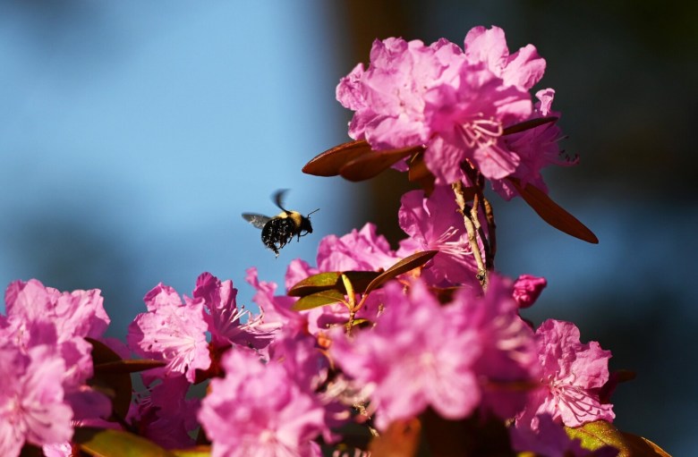 A bumblebee visits azaleas in bloom in Saco on May 6.
