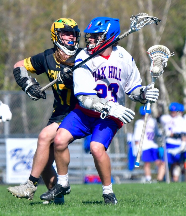 WALES — The numbers posted by the undefeated Oak Hill/Monmouth/Lisbon boys lacrosse team jump off the scoreboard. The Raiders have yet to score fewer than a dozen goals in any match this spring. They’ve scored 20 goals in a game, 19 in another, and on five occasions they’ve scored 15 times or more.