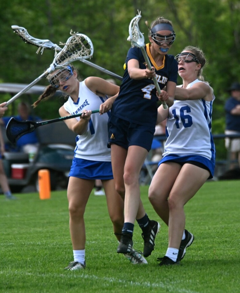 After No. 7 Lawrence (7-5) got a Sage Brown goal just 39 seconds into the game, the Bulldogs doubled their lead at 21:40 as Mt. Blue goaltender Michelle Seaberg inadvertently flung the ball into the back of her own net on a restart. Chloe Roberts then scored for the Cougars at 19:25 before Amy Boyce responded for Lawrence at 17:07.