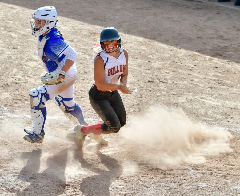 Lexi Rideout followed with a sacrifice bunt, but was safe at first, as first base was not tagged for the putout. Rideout immediately took second base amid the confusion of the play.