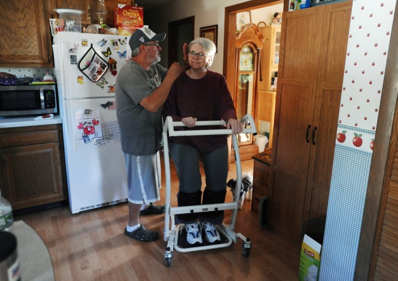 After starting to improve, she began physical, occupational and speech therapies. Steve stayed with her in the hospital every day, all day. She spent a total of five months in hospitals and nursing homes before being sent home with the understanding she would have home health care. Though Steve called constantly, the care didn’t arrive for two months. They had fallen through the cracks and in the meantime, he was her sole caregiver — cooking all the meals, doing the laundry, washing floors and acting as her nurse. He couldn’t sleep at night.