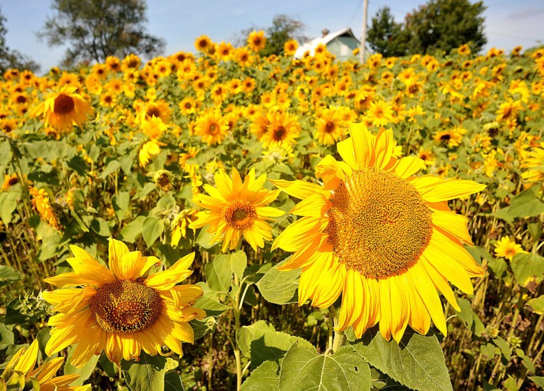 3353# 01butterlfy BENTON, MAINE SEPTEMBER 10, 2020, A field of sunflowers is shown with a barn in Benton, Maine Thursday September 10, 2020. (Staff photo by Rich Abrahamson/Morning Sentinel.