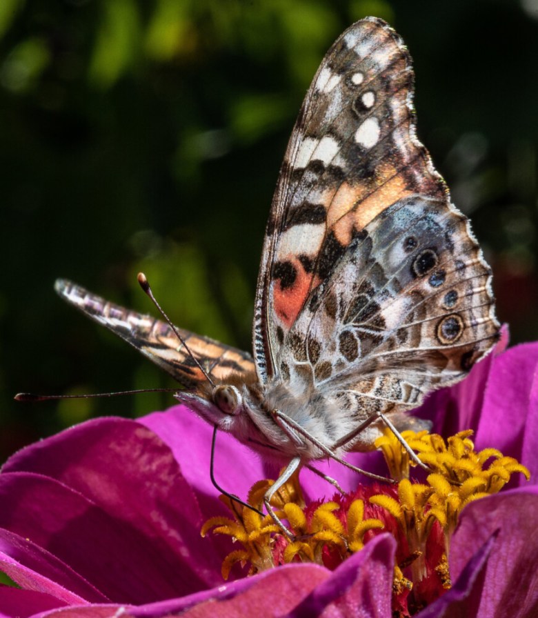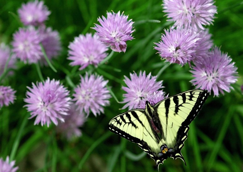 A Swallowtail butterfly feeds on nectar in Hallowell. The colorful insects also spread pollen collected from flowers, helping seed a variety of different species.