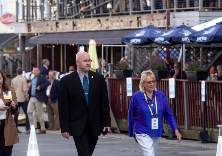 Maine Gov. Janet Mills, a Democrat, and Arkansas Gov. Asa Hutchinson, a Republican, were both spotted at Wednesday’s event on Commercial Street. Hutchinson is the NGA’s chairman.