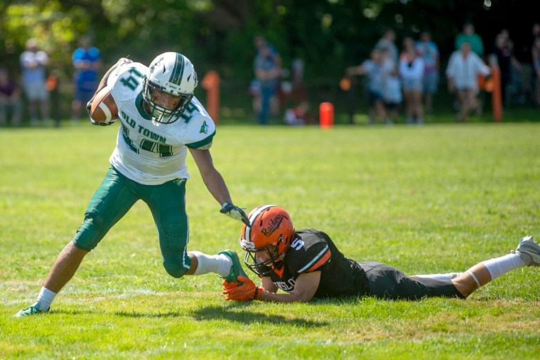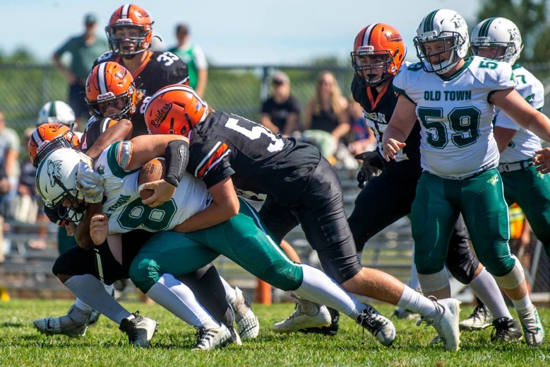 Old Town would score late in the second quarter, on a 10-yard pass from Craft to Cote, to trail 44-14 at halftime. But Winslow jumped out to the final 58-14 score on a 17-yard touchdown run from Quirion and an 8-yard run from Garcia, both in the third quarter.