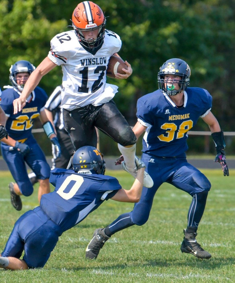 The loss of standout running back Matt Quirion to injury, who ran for nearly 200 yards in Winslow’s season-opening victory over Old Town, was certainly no help. Without Quirion’s speed, the Black Raiders lacked a much-needed dimension in the run game, a weakness Medomak was able to exploit.