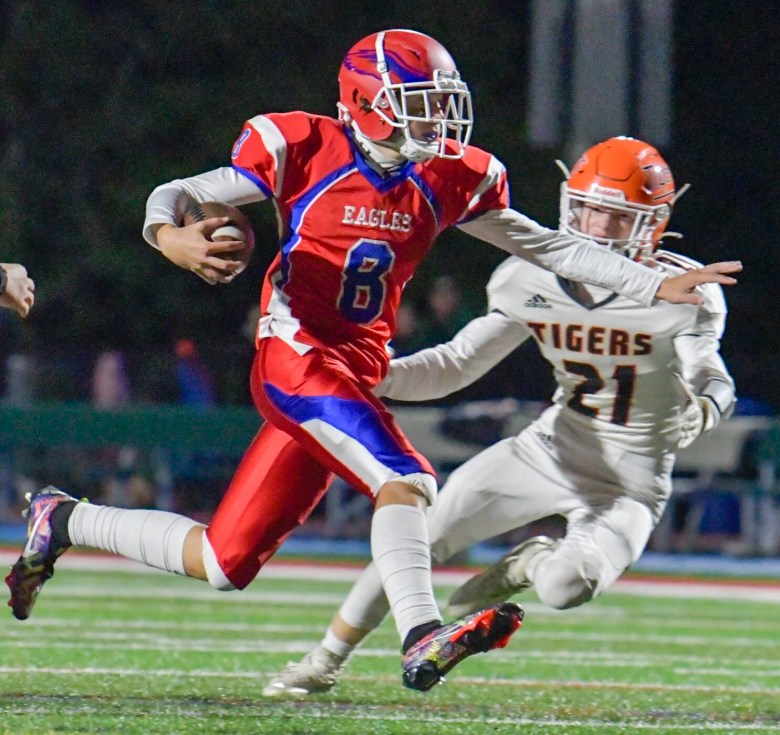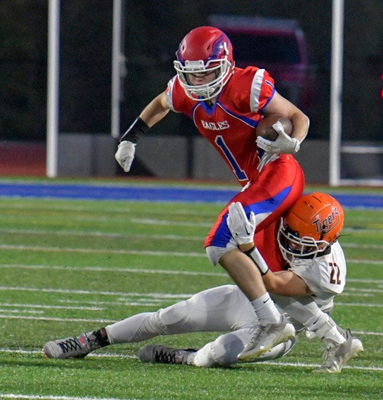 Penalties and mental errors ultimately doomed the Eagles, who countered the Tigers with a balanced rushing attack, led by Bryce Crowell, who had 95 yards on 17 carries.